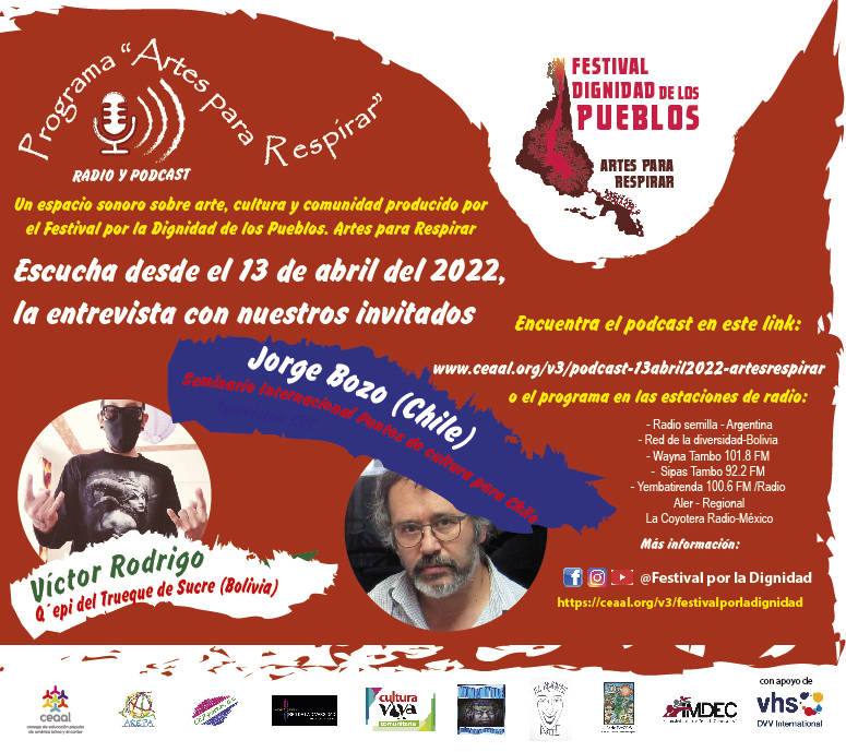 #Podcast – Programa «Artes para Respirar». 13 abril 2022. Entrevista con Jorge Bozo, del Seminario Internacional Puntos de Cultura para Chile – Televisión CVC (Chile) y Víctor Rodrigo del Q´epi del Trueque de Sucre (Bolivia)