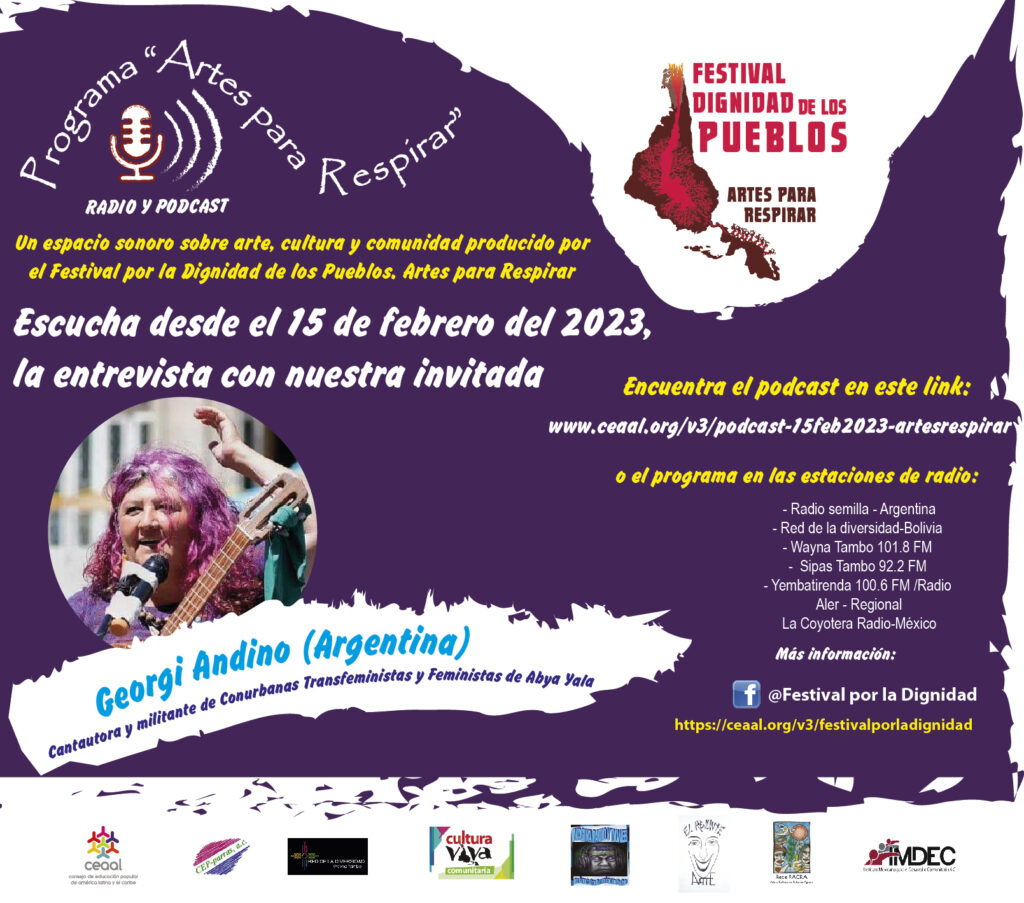#Podcast – Programa «Artes para Respirar». 15 febrero 2023. Entrevista a Georgi Andino (Argentina), cantautora, militante de Conurbanas Transfeministas y Feministas de Abya Yala