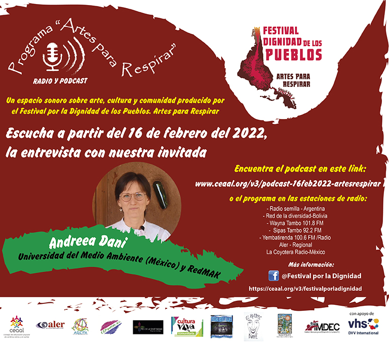 Esta emisión, conducida por Carla Barrero (Bolivia) contiene una entrevista con Andreea Dani (Rumania-México), de la Universidad del Medio Ambiente (México) y de la RedMAK, sobre el ciclo de videoconferencias y comunidad de diálogo «Hábitat y género: mujeres construyendo un hábitat más inclusivo», que se impulsa desde la RedMAK, junto con IMDEC y la UMA.