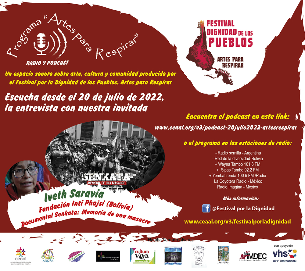 #Podcast – Programa «Artes para Respirar». 20 julio 2022. Entrevista a Iveth Saravia, de Fundación Inti Phajsi (Bolivia), sobre el documental Senkata: memorias de una masacre.