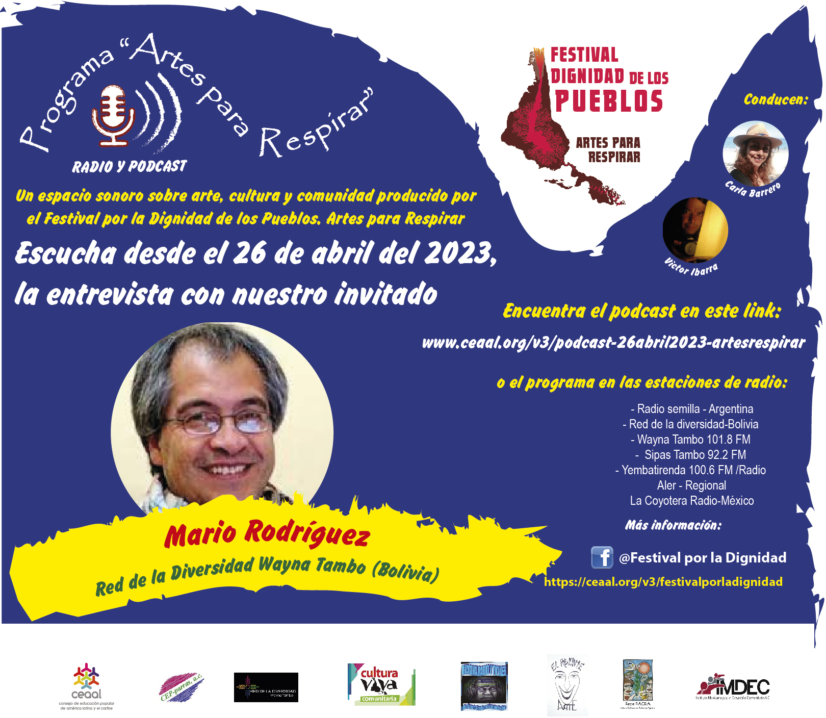Esta emisión, conducida por Carla Barrero (Bolivia) y Víctor Ibarra (México) contiene la entrevista a Mario Rodríguez (Bolivia), de la Red de la Diversidad – Wayna Tambo, con quien conversamos sobre el Movimiento de Cultura Viva Comunitaria Latinoamericano a propósito de los los 10 años desde el I Congreso de CVC en Bolivia.