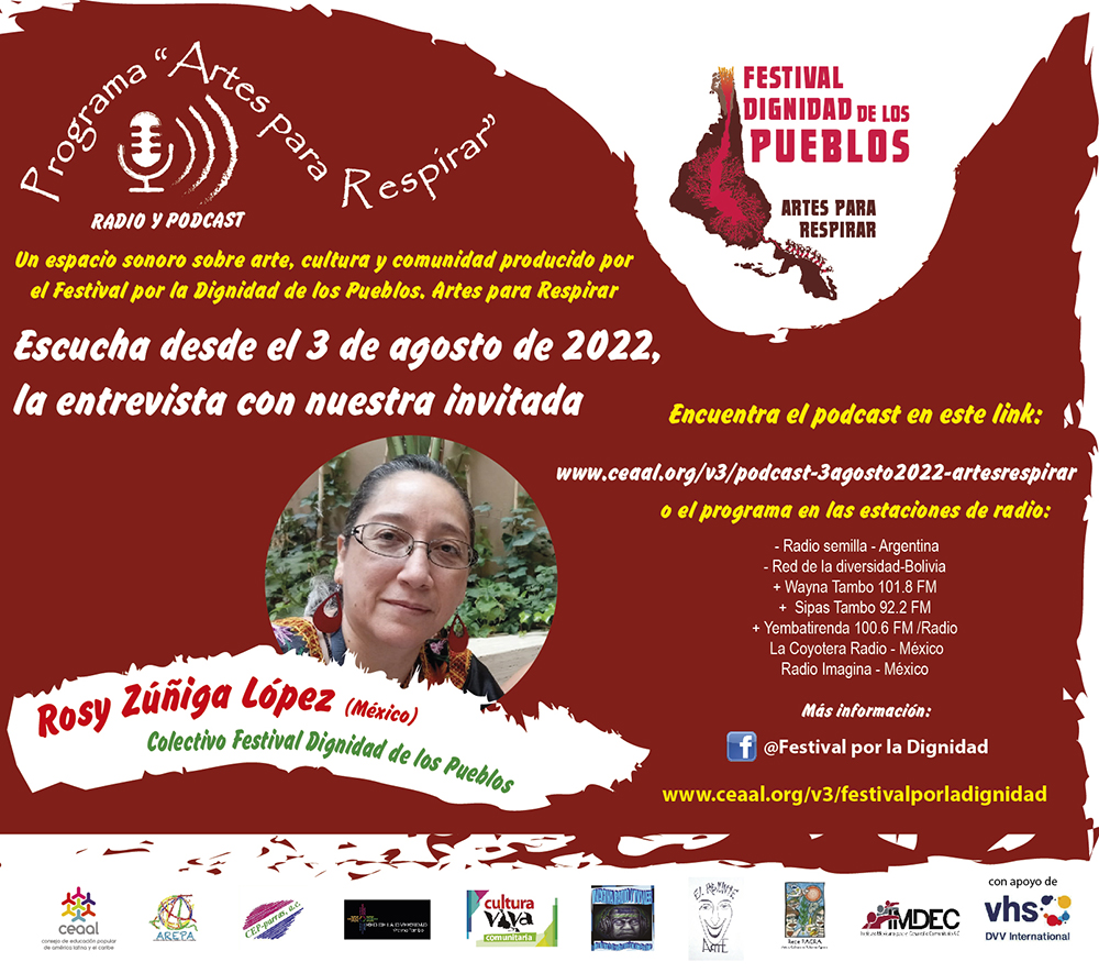#Podcast – Programa «Artes para Respirar». 3 agosto 2022. Entrevista a Rosa Elva Zúñiga (México), del Colectivo Festival de la Dignidad de los Pueblos Artes para Respirar.