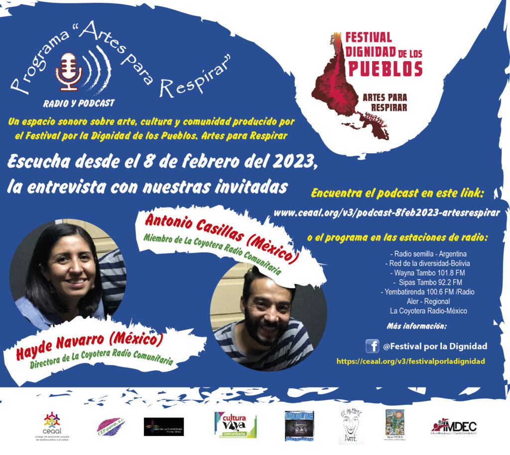 Este programa de radio y podcast «Artes para Respirar» es coproducido por el Colectivo del Festival de la Dignidad de los Pueblos.
