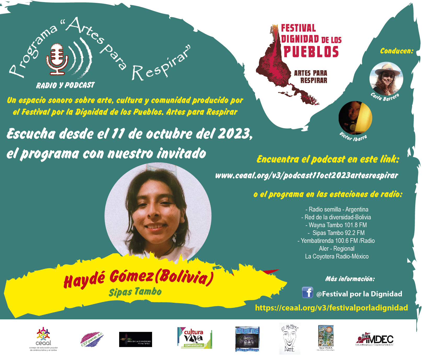 Este programa de radio y podcast «Artes para Respirar» es coproducido por el Colectivo del Festival de la Dignidad de los Pueblos.