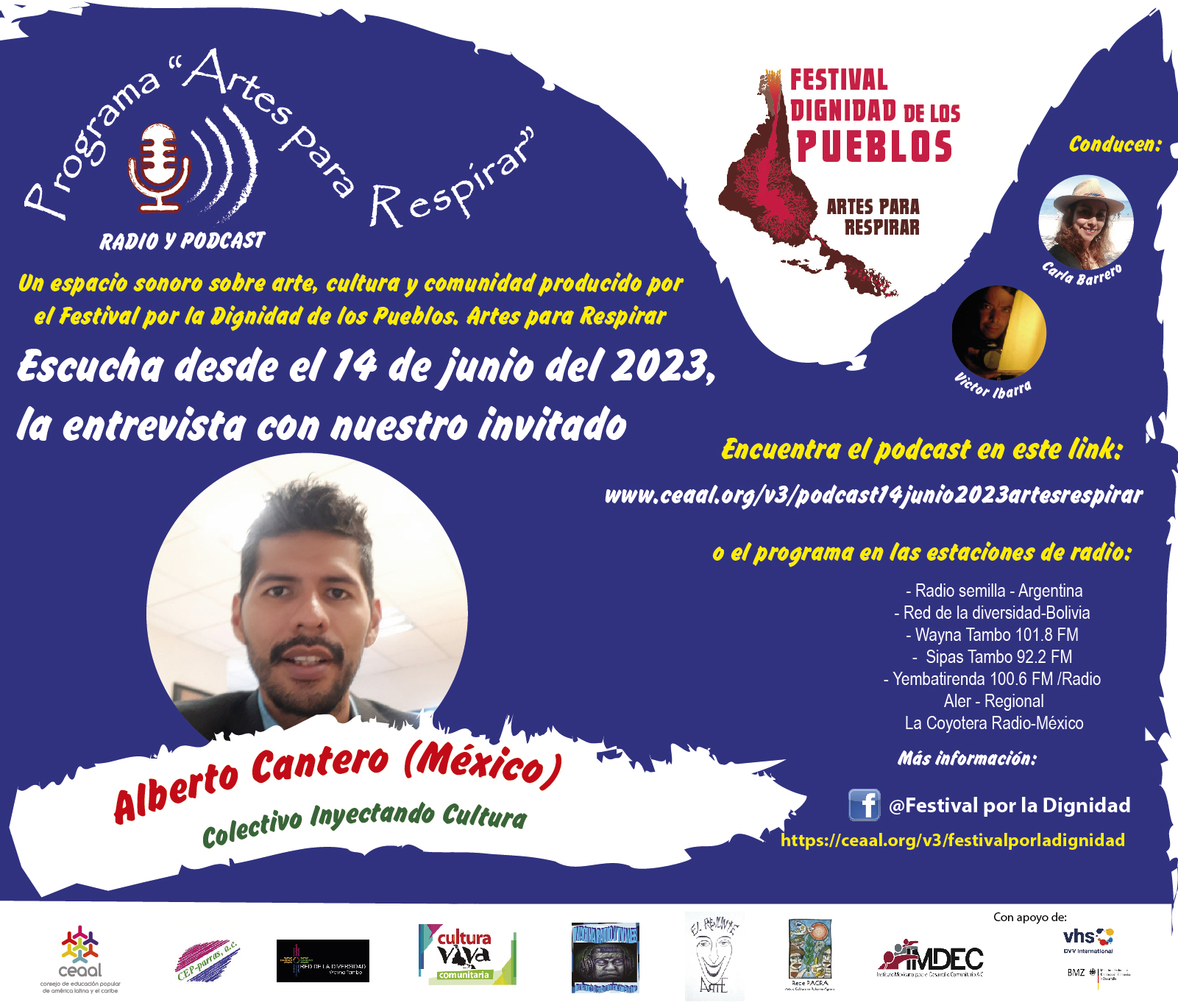 #Podcast – Programa «Artes para Respirar». 14 junio 2023. Entrevista a Alberto Cantero, del Colectivo Inyectando Cultura (México).