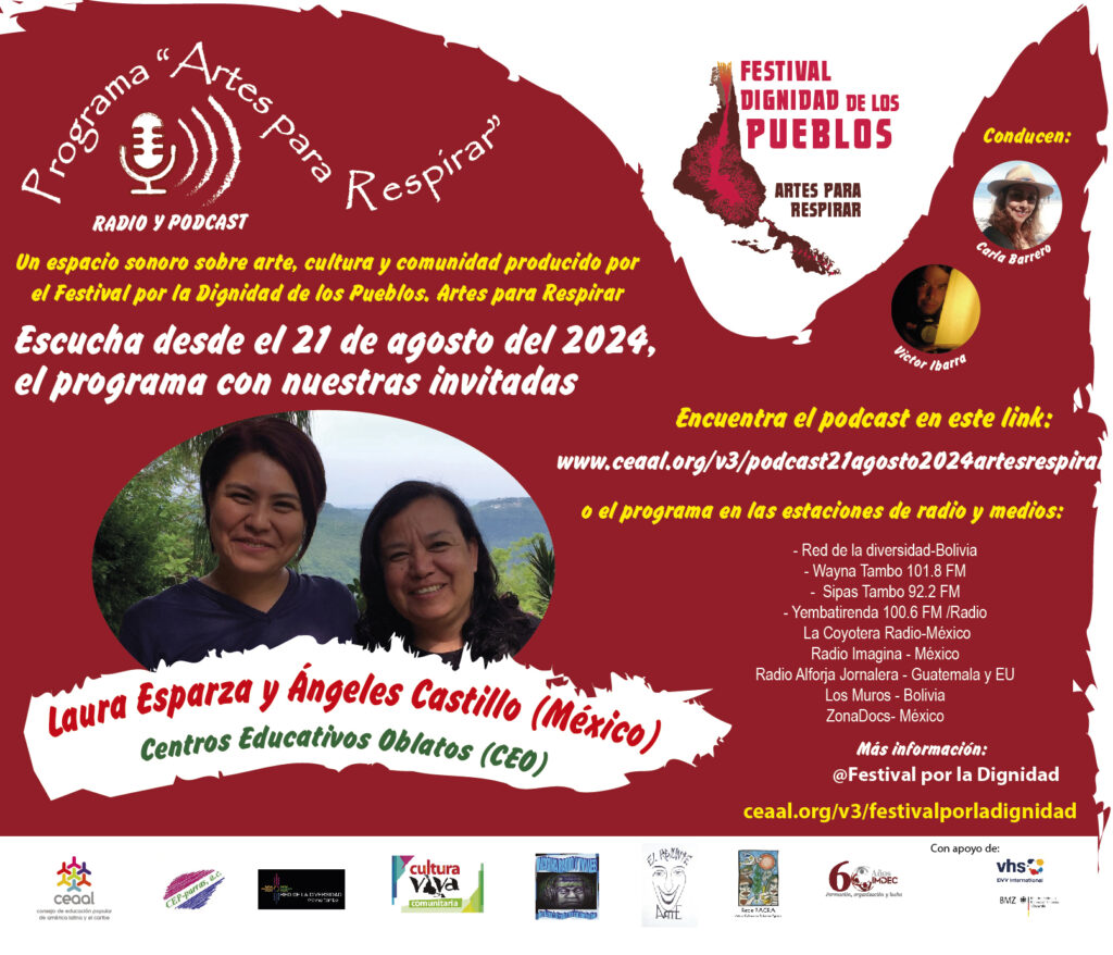 En esta emisión, conducida por Carla Barrero (Bolivia) y Víctor Ibarra (México), contiene la entrevista con Ángeles Castillo y Laura Esparza (México), de Centros Educativos Oblatos (CEO), quienes nos hablan de la historia y del presente de esta organización comunitaria, enclavada en la Colonia Santa Cecilia, en Guadalajara, México.
