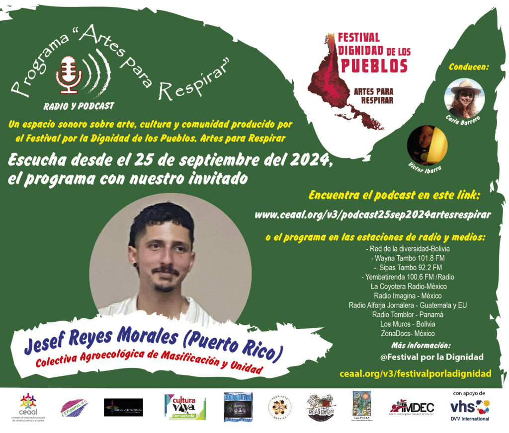 #Podcast – Programa «Artes para Respirar». 25 septiembre 2024. Entrevista con Jesef Reyes Morales (Puerto Rico), de la Colectiva Agroecológica de Masificación y Unidad