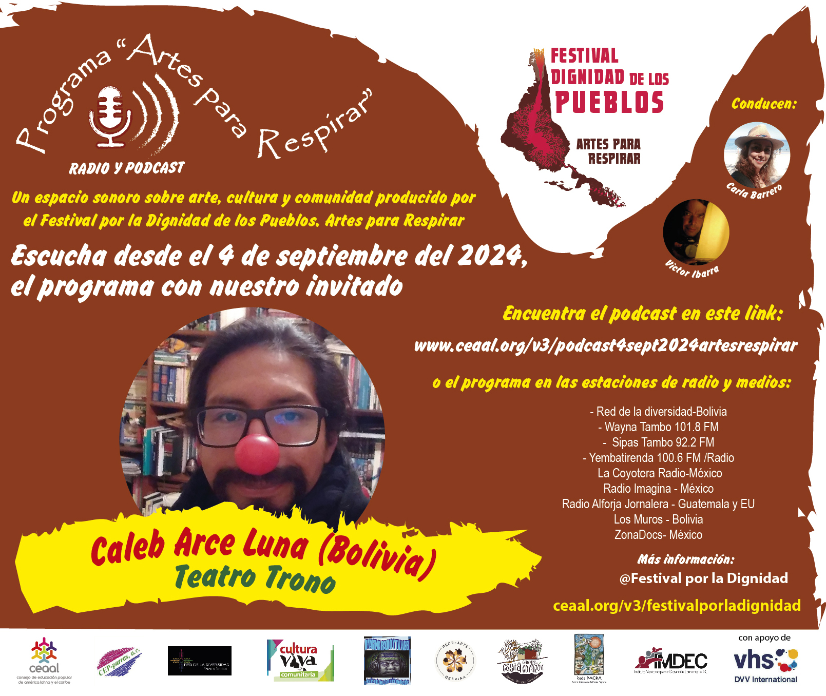 En esta emisión, conducida por Carla Barrero (Bolivia) y Víctor Ibarra (México), contiene la entrevista con Caleb Arce Luna (Bolivia), de Teatro Trono, quien nos habla de la historia y presente de este espacio cutural comunitario en El Alto, Bolivia.