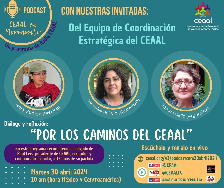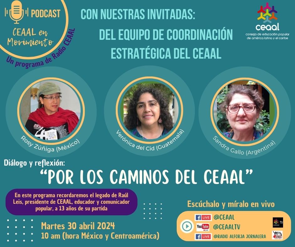 Programa de radio y podcast «CEAAL en Movimiento», del martes 30 de abril, en esta ocasión con el diálogo y reflexión «Por los Caminos del CEAAL», con nuestr@s invitad@s del Equipo de Coordinación Estratégica del CEAAL: