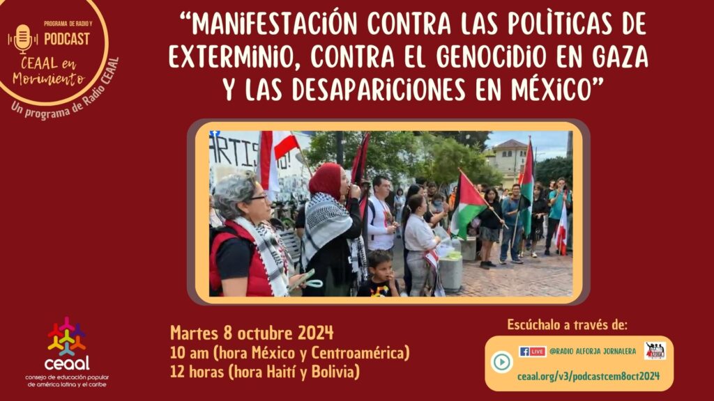 Les invitamos a escuchar el programa de radio y podcast «CEAAL en Movimiento», desde este martes 8 de octubre, en esta ocasión con acciones realizadas en solidaridad con Palestina en Guadalajara, México