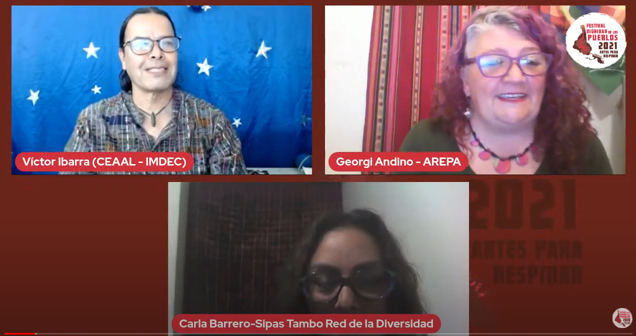 Desde el Consejo de Educación Popular de América Latina y el Caribe , Cultura Viva Comunitaria , ALER Satelital , Red de la Diversidad – Wayna Tambo , AREPA , Cep Parras, Foro Intercultural Imagina Radio , El Rejunte Arte , Red PACRA e IMDEC nos auto convocamos para disoñar un Festival por la Dignidad de nuestros Pueblos Artes para Respirar