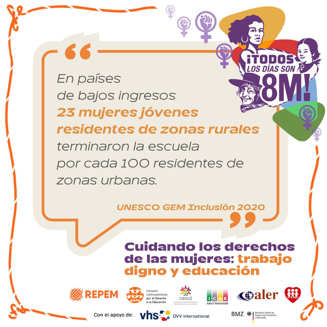 #TodosLosDíasSon8M “Las evidencias muestran que los compromisos asumidos por los Estados para proveer educación a las personas jóvenes y adultas están lejos de su cumplimiento, tanto en términos normativos, políticos, financieros y presupuestarios como en términos institucionales.”