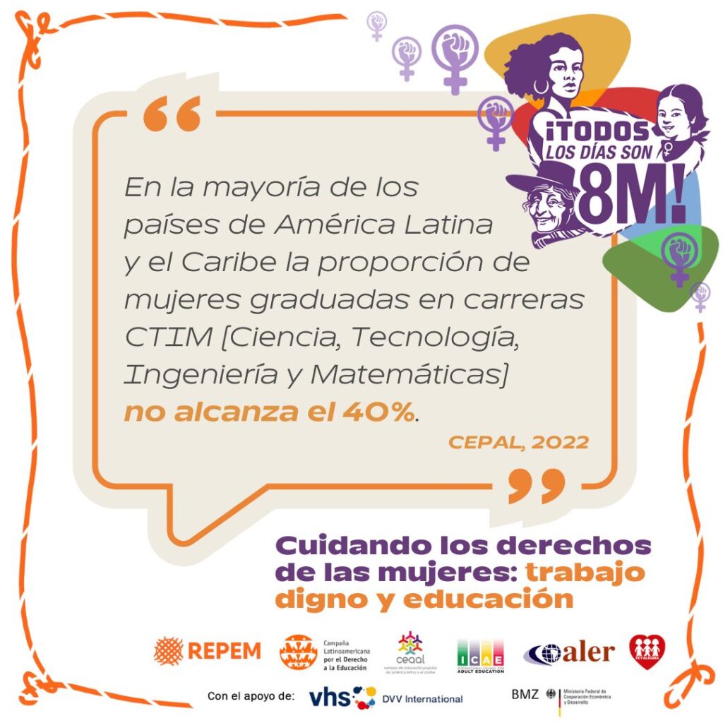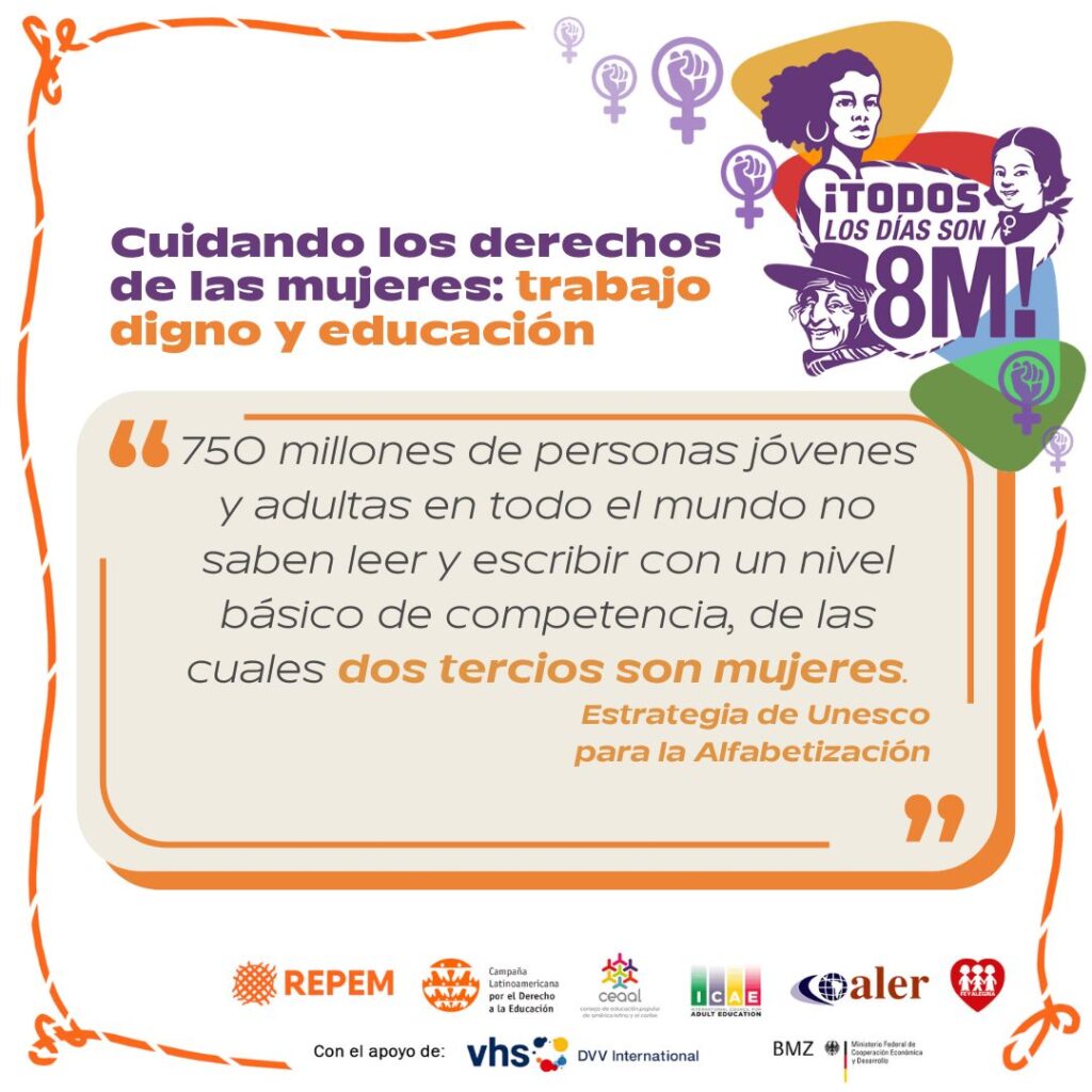 La Plataforma de redes regionales por la Educación de Personas Jóvenes y Adultas (#EPJA) comparte su campaña Cuidando los derechos de las mujeres: trabajo digno y educación. Todos los días son #8M.