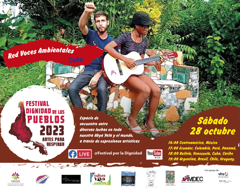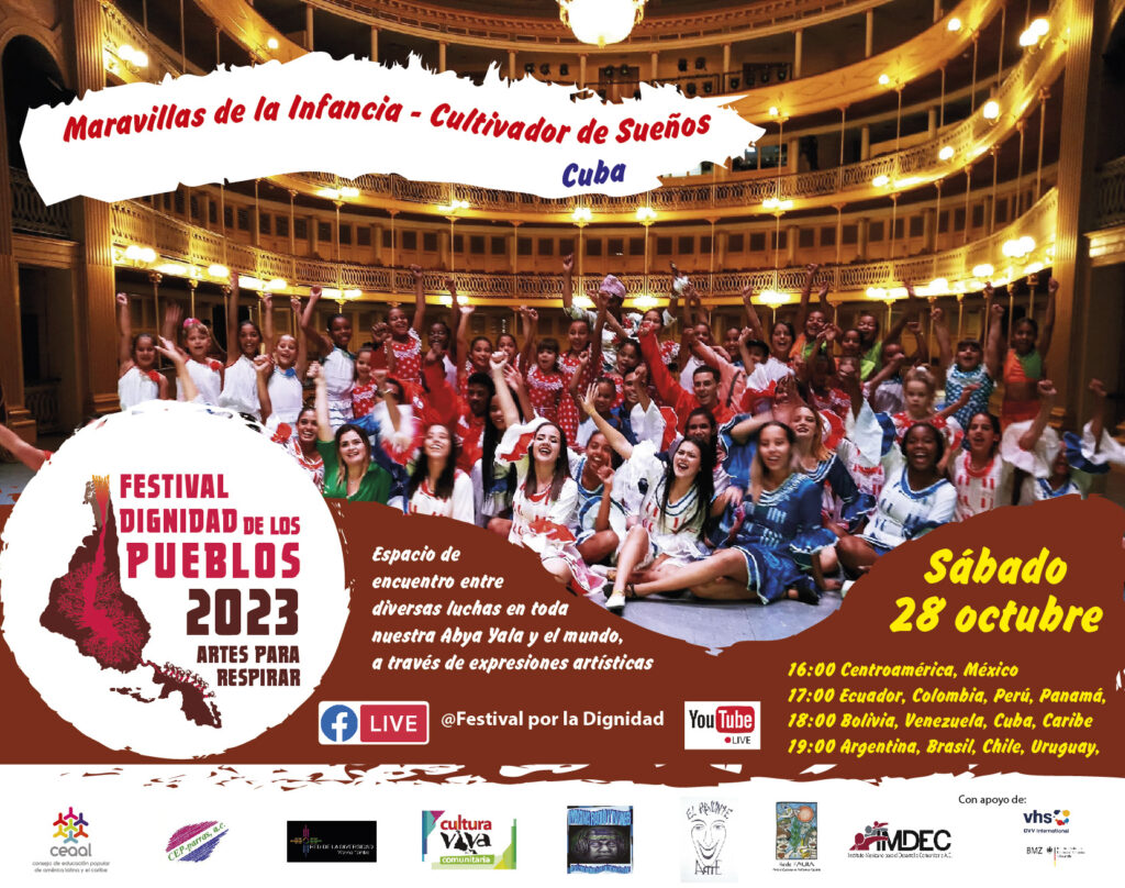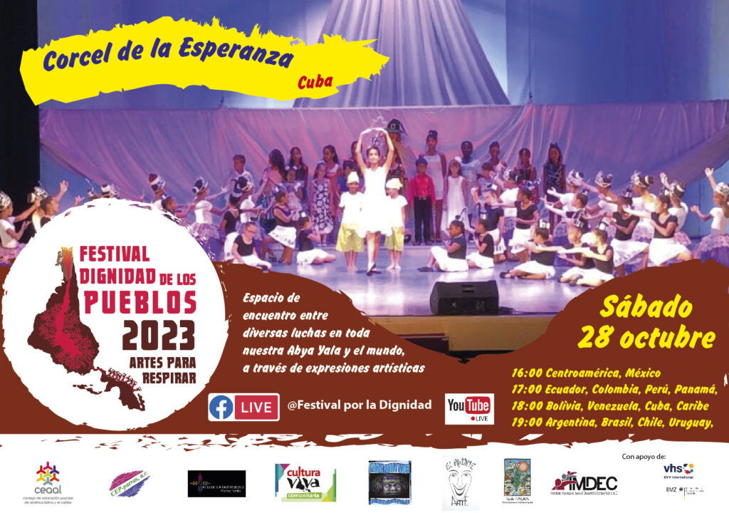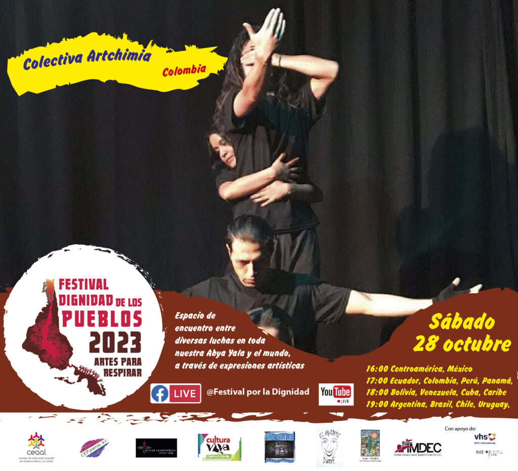 El sábado 28 de octubre se realizó la cuarta edición del Festival de la Dignidad de los Pueblos. Artes para Respirar 2023, el cual reunió experiencias de países como Colombia, Ecuador, México, Cuba, España, Argentina, Perú y Brasil, que a través del arte y la cultura comparten sus luchas, apuestas y propuestas.