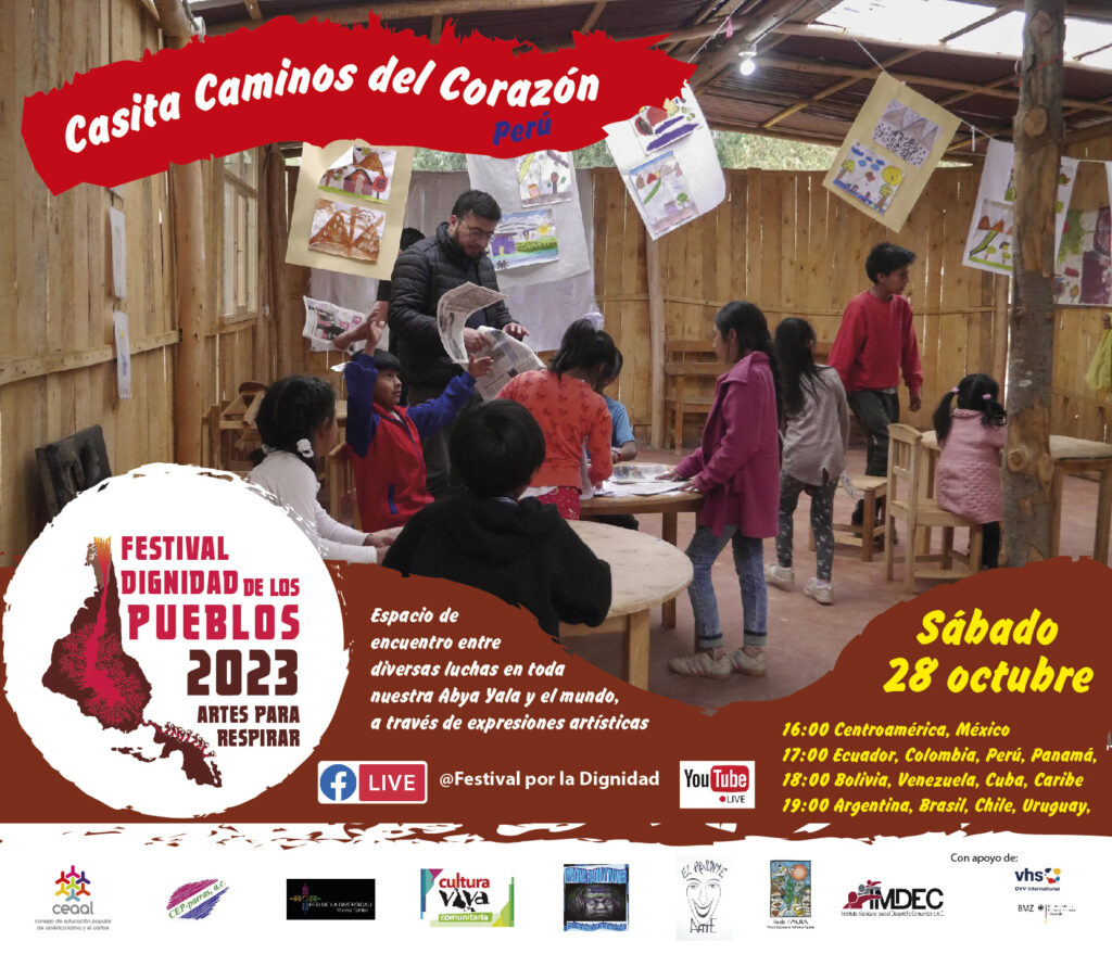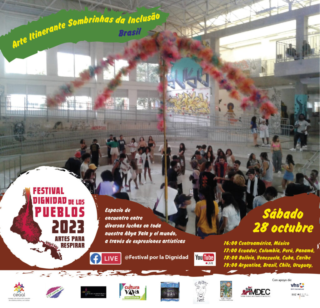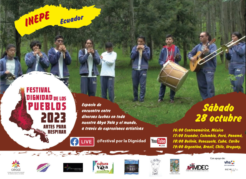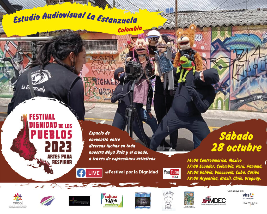 El sábado 28 de octubre se realizó la cuarta edición del Festival de la Dignidad de los Pueblos. Artes para Respirar 2023, el cual reunió experiencias de países como Colombia, Ecuador, México, Cuba, España, Argentina, Perú y Brasil, que a través del arte y la cultura comparten sus luchas, apuestas y propuestas.