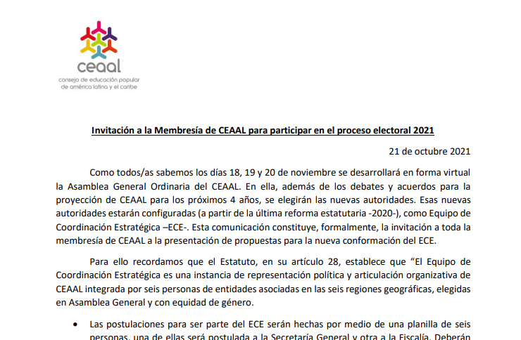 Invitación a la Membresía de CEAAL para participar en el proceso electoral 2021